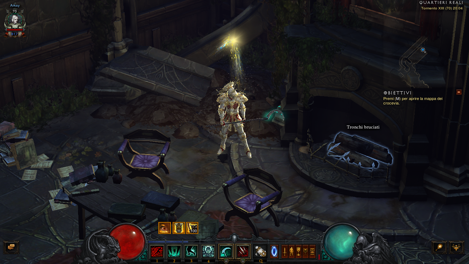 Il terzo reagente è la Tibia di Leoric, che può essere trovata all’interno del caminetto presente nel Maniero di Leoric. Arrivarci è semplice. Teletrasportati alla Corte del Maniero di Leoric, una volta raggiunto il posto entra all’interno del Maniero e raggiungi la prima stanza alla destra del tuo personaggio. Se la fortuna sarà dalla tua parte all’interno del caminetto vedrai dei ceppi con cui potrai interagire. Cliccaci sopra e apparirà la Tibia. Ovviamente, come per il Fungo Nero, l’apparizione di tale oggetto è del tutto casuale. Se non lo trovi al primo colpo non disperare, riprova finché non appare.